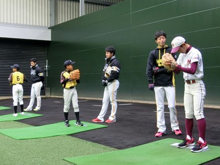古谷投手は「リリースポイントのことなどを聞かれたので話をしました。ただ、小学生の時期はとにかく楽しく野球をしてほしいです」と振り返っていました。また、内野手の松本龍選手は守備の構えを、身振り手振りを交えて指導。打撃を担当した森山選手らは自らバットを握って実演してみせたりしていました。
