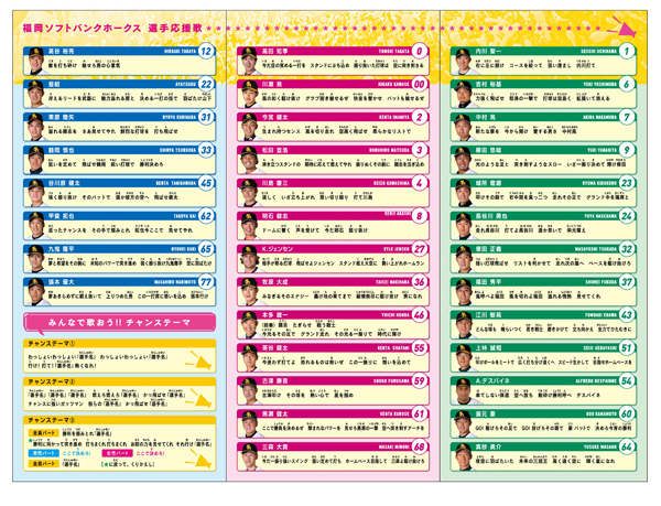 昨年大好評だった「選手の応援歌やチャンステーマの歌詞が載ったガイドブック」を、今年制作します。オープン戦期間中、コンコース内に数量限定で設置します。熱い大声援で、オープン戦から選手たちを後押ししよう!