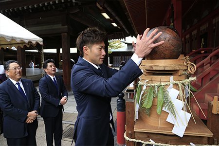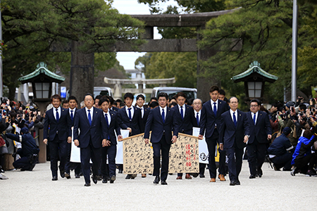 1月30日(火)、今季のリーグ制覇と日本一への願いを込めて、福岡市東区の筥崎宮にて必勝祈願を行いました。