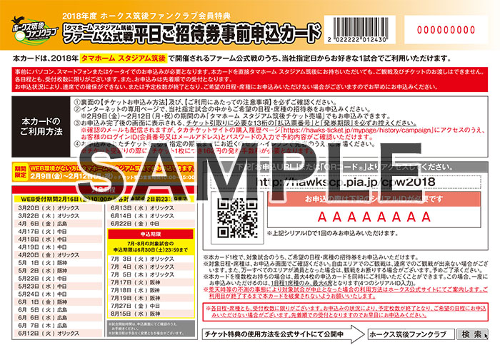 | 対象 | 2018年度ホークス筑後ファンクラブ会員 |