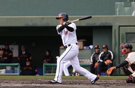 試合は開始直後から見どころ満載。1回裏、先発の工藤監督とバッテリーを組むのは城島健司氏。「6年前に引退してユニフォームを着たのは初めて。キャッチボールもしていない」というのが嘘みたいなキャッチングとセカンドへのスローイングを披露。城島氏は「(巨人OB1番打者だった)高橋由伸監督からスカウトされちゃいました」とかつての城島節も健在に報道陣を笑わせていました。