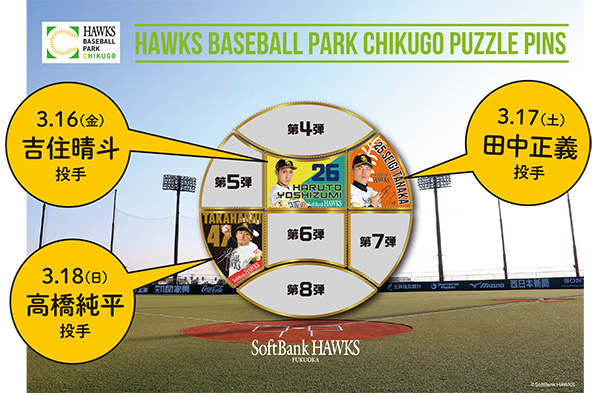 2018年の開幕3連戦は、タマスタ筑後開業年からのドラフト1位選手デザインのピンズをプレゼントします。
