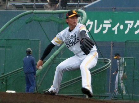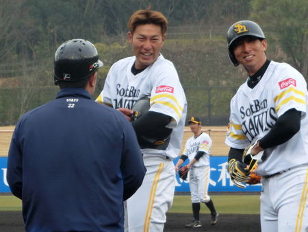 また、東浜巨投手がシート打撃に初登板し、打者7人に対して1安打のみの好投。松田宣浩選手と内川聖一選手とも対戦して、いずれもセンターフライに打ち取りました。それでも東浜投手の中ではまだ課題があるようで「手応えは全然ない。というか、自分の現状を知るというテーマで投げていました。まだまだ修正するところはありますね」と話し、マウンドを降りた後もブルペンに直行して投球を確認していました。