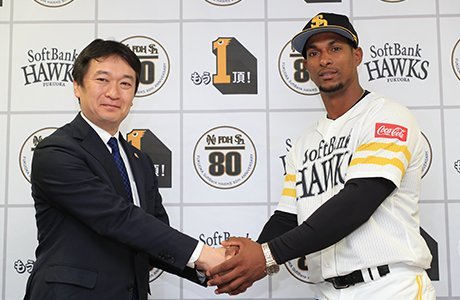 会見に臨んだグラシアル選手は「オハヨウゴザイマス」と覚えたての日本語であいさつ。「ホークスが強いチームだということは知っています。デスパイネやモイネロからアドバイスも貰っています。すごく雰囲気のいいチームと聞いています。また、日本ではチームのためにプレーすることが大事だと教えてもらいました」。モットーは全力プレー。「具体的な目標の数字はココでは言えないけど、自分の中では持っている。優勝に貢献できるようないい準備をしていきたい」。