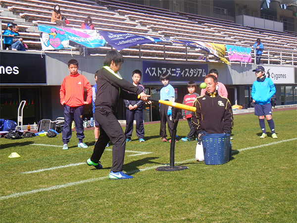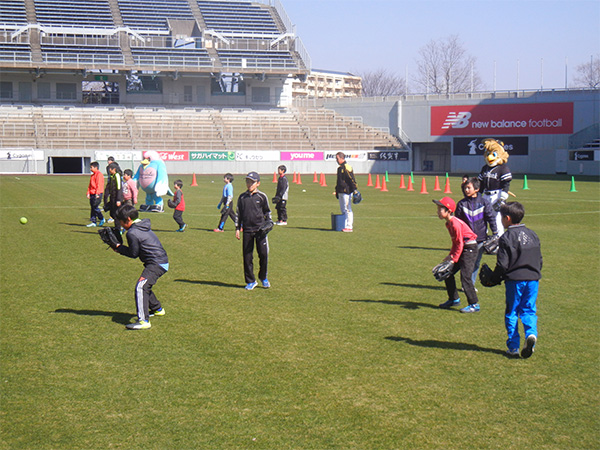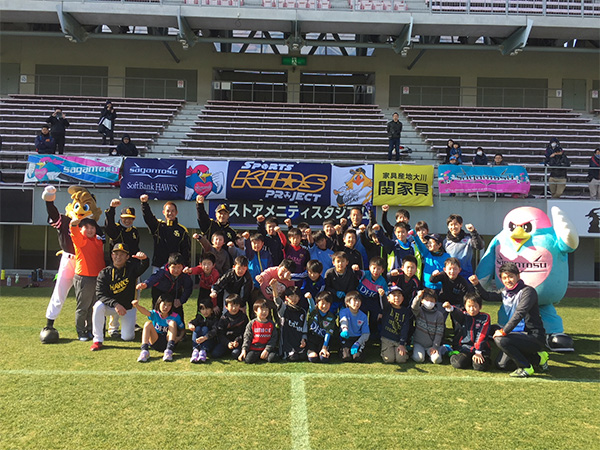 2月17日(土)サガン鳥栖のホームスタジアムのベストアメニティスタジアムでスポーツキッズ教室が開催されました。2月23日(金)のJリーグ開幕前のピッチで、サッカーと野球を子供たちが楽しみました!