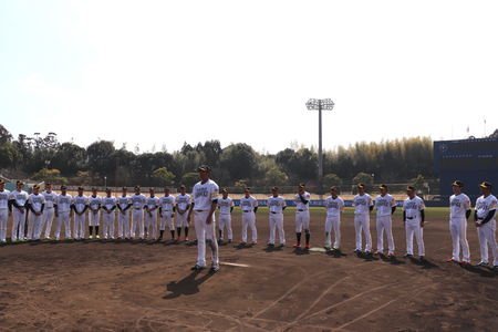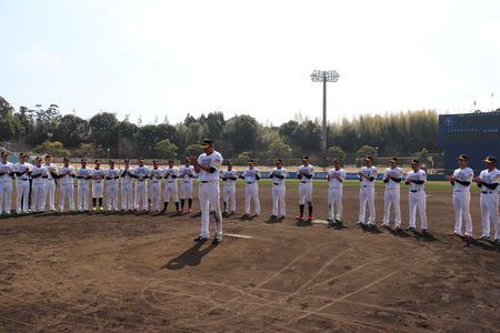 いざ、本番。なかなか選手会長らしいコメントを言い……