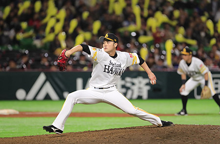 ホークス先発の中田賢一投手は4回途中1失点。「低めにボールを集めることは出来た」と収穫を語った。