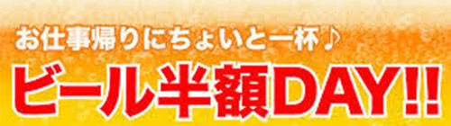 ※半額対象外のビールもございますので、お間違えないようにお願いします。