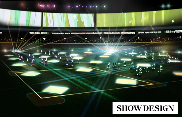 ゆず、SEKAI NO OWARI、AAA等のライブの演出を手掛ける『SHOW DESING」所属の演出家 井實博昭がショーを製作、新井健介が振付を担当。球界初、28枚のLEDパネルを使用し、ホークス80周年を記念した、壮大な光のショーを実施いたします。