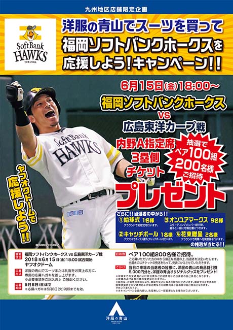 洋服の青山でスーツ・フォーマルをお買い上げの方、抽選でペア100組200名様に観戦チケットプレゼント!!