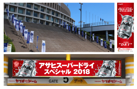 メイン導線であり、グッズ販売エリア隣にある大階段に、また入場ゲート各所に、「アサヒスーパードライスペシャル2018」のぼり、横断幕にて演出し、当日の試合会場を盛り上げてまいります。