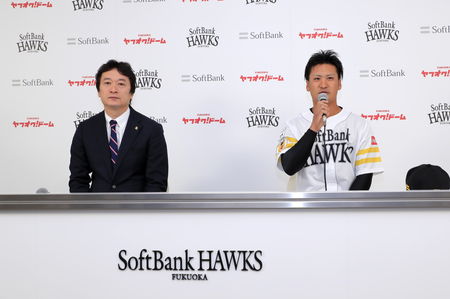 3月27日(火)、堀内汰門選手が支配下登録されることになり、ヤフオクドームにて会見が行われました。ホークスで育成枠から支配下登録されたのは25人目(26例目)となりました。