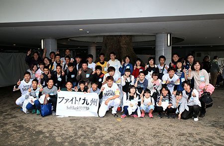 プレーボール予定時刻の前には、「児童養護施設 菊水学園」の生徒41名を選手会が招待。柳田選手、今宮健太選手、中村晃選手、さらに当初予定にはなかったサファテ投手と森唯斗投手も参加して一緒に写真に収まりました。