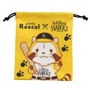 表はバッタースタイルのラスカル、裏は応援スタイルのラスカルがデザインされたかわいい巾着はコスメやステーショナリーを入れるポーチとしても大活躍!