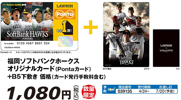 福岡ソフトバンクホークスの選手が登場するオリジナルデザインの「Pontaカード」に、B5サイズの下敷きが付いたセットが登場!ローソンLoppi、HMV&BOOKS onlineにて、予約受付中!