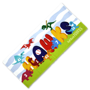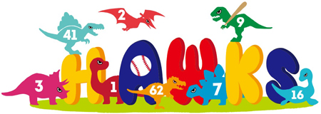 ホークス選手とコラボした恐竜が大集合!カラフルな恐竜たちがかわいいフェイスタオルです。これをかかげて親子でホークスを応援しよう!