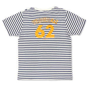 ホークス選手と恐竜がコラボした大人用のTシャツ。胸元にはかわいいホークス恐竜。背面には選手の背番号と選手×恐竜のコラボネーム入り。ベーシックなボーダー柄で、野球観戦だけでなく普段使いもしやすいアイテムです。子供用と合わせてプチお揃いコーデもお勧め!