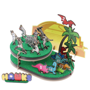 ヤフオクドームにホークス選手と、選手とコラボした恐竜が大集合!お好きなところにさして楽しめる、かわいいジオラマです。お部屋のインテリアにもぴったり。