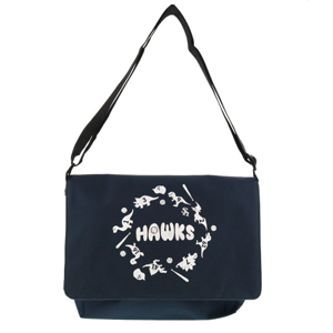ホークス選手とコラボした恐竜がかわいい、メッセンジャーバッグ。コーディネートしやすいネイビーのシンプルなデザインで、野球観戦だけでなく普段使いもしやすいアイテムです。