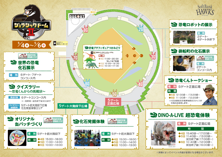 ゴールデンウィークは家族みんなで、恐竜の魅力いっぱいのヤフオクドームに出かけて、ホークスを応援しよう!