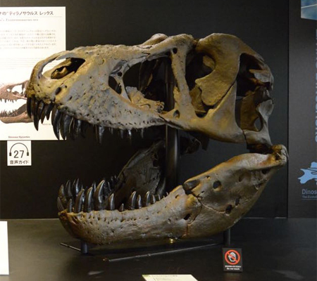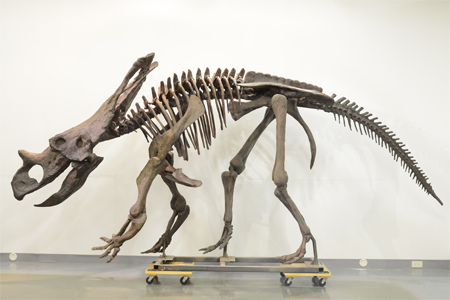アラシャサウルス全身骨格やカスモサウルス全身骨格、ティラノサウルス頭骨化石をドーム内で展示します。実際に地球上に存在していた生物の姿を身近に感じてみよう !