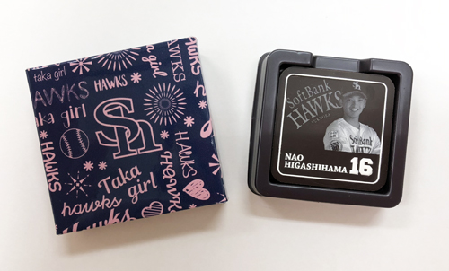 タカポイント・クラブホークスの女性会員が選んだ「好きな選手」TOP 9人が、非売品のオリジナルチョコレートで登場♡ 可愛いチョコレートの箱は、今年のタカガールユニフォームのデザインをモチーフとし、チョコレートの上には選手の笑顔がプリントされています!疲れた時の休憩でも、タカガールデーの思い出としても嬉しい!!