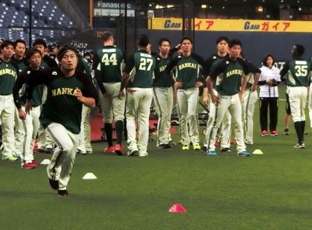 練習着も南海モデルを復刻。いまの現役選手たちはなかなかピンと来ていない様子もありましたが、当時現役バリバリだった藤本博史打撃コーチは特に似合っていました。また、千賀滉大投手や柳田悠岐選手あたりも意外と似合っていました。