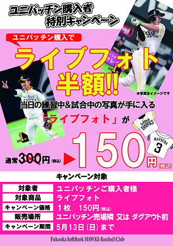 | ライブフォト販売箇所 | コンコース7.8ゲート間特別ブース・ダグアウトヤフオクドーム店フォト売場 |