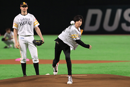 13日は、“日本一かわいい女子高生”を決める「女子高生ミスコン2017‐2018」で見事グランプリに輝いた、福岡県出身・高校3年生のタカガール、“めいめい”こと福田愛依さんが来場。さらに始球式は乃木坂46の衛藤美彩さんが務めました。衛藤さんはワインドアップ投法から見事なノーバウンド投球。「人生初。緊張して足の底から震えがきて、その震えと戦って投げました」と照れ笑いを浮かべましたが、「千賀投手にボールの持ち方やフォームのアドバイスを貰いました。横を向いて、しっかり大きく強く左足を踏み出してと。ノーバウンドが目標だったので嬉しかったです。千賀投手からも『ノーバン頑張って』と言われていたので、約束を守れてよかったです」とキュートな笑顔を浮かべた。また、大分出身で「今日は両親もスタンドで見てくれていました。この球場には一緒に何度も足を運んだことがあります。感慨深かったです」と目をキラキラ輝かせて話していました。
