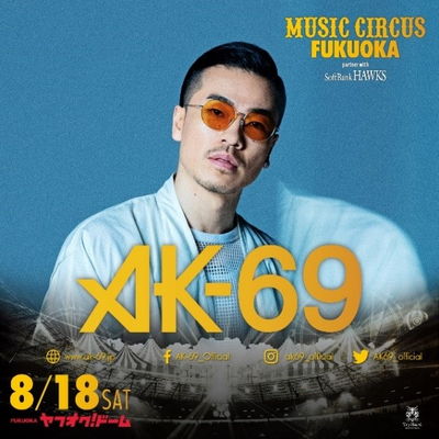 シンガーソングライター、ヒップホップMC、実業家。本名は武士尋己(たけしひろき)2017年、日本武道館でのライブが全席完売・満員御礼の大成功を果たすなど、日本国内での人気はさることながら、ニューヨークのNo.1 HIP HOPラジオ局と名高い”HOT97”に日本人として初のインタビューを受け、海外へも活躍の場を広げています。ボクシング世界王者やサッカー選手、IT企業の経営者などから幅広い支持を集め、プロ野球選手登場曲の使用率No.1に3度輝いています。球場で彼の楽曲がかかれば通常は選手が登場しますが、8月18日のヤフオクドームにはAK-69本人が登場します。