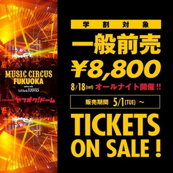ヤフオクドームで8月18日(土)に開催される、音楽フェスティバル「MUSIC CIRCUS FUKUOKA partner with SoftBank HAWKS」の第3弾出演アーティストを発表いたします。チケットは絶賛発売中です!