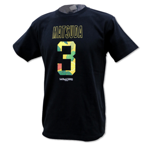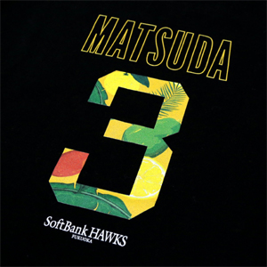 ブラックボディのTシャツのフロントには宮崎をイメージしたみずみずしいフルーツとリーフがモチーフのトロピカルリーフ柄を選手背番号でかたどった、華やかなデザイン。応援ウェアとしてユニフォームのインナーとしてコーディネートしても、普段使いにもおススメです。