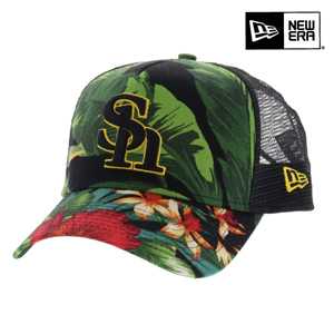宮崎トロピカルリーフ柄Tシャツとコーディネートできるイチ推しデザイン、ボタニカル柄のNewEraキャップです。バックがメッシュになっているのでこれからの季節大活躍!