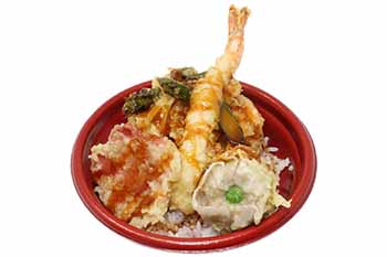 横浜を「焼売」で、東京を「かき揚げ」で、広島を「花ソーセージ」でイメージした天丼