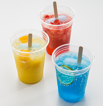 氷結にシロップでレッドを表現し、ラムネ(アイス)バーと、冷凍いちごをトッピング!