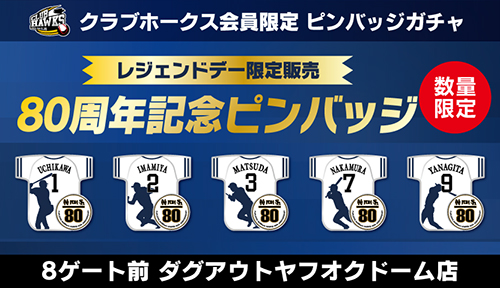 また、6月2日(土)のレジェンドデーでは、レジェンドデー限定の球団創設80周年ピンバッチを投入!