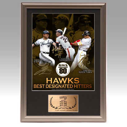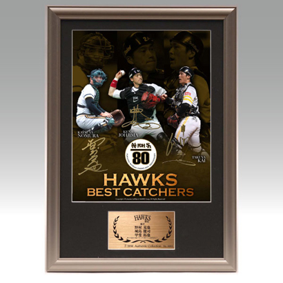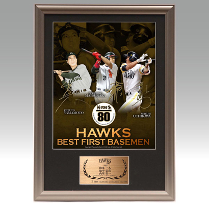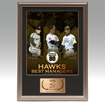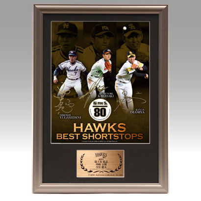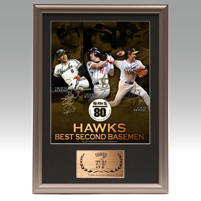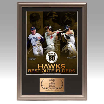 西日本スポーツ紙の読者が選ぶ「ホークス神ナイン」投票結果より選出された、南海、ダイエー、ソフトバンク各ホークス球団の各守備及び監督のベストナインがメモリアルフォトパネルになって登場!歴史あるホークスのベストナインをつづったシリアルナンバー入りの貴重な記念フォトです。