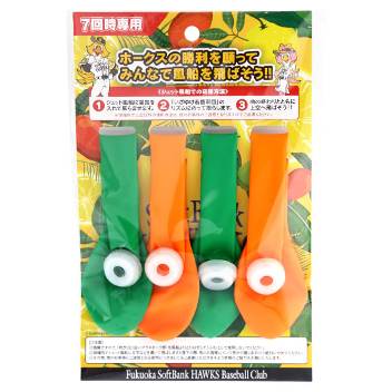 オレンジとグリーンの2色セットのジェット風船。宮崎スペシャルDAYSはこの風船を飛ばして球場を華やかに染めよう!