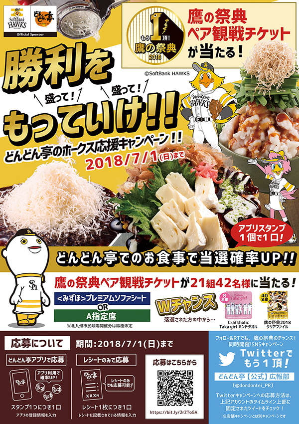 どんどん亭より鷹の祭典観戦チケットが当たる!