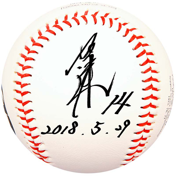 記録達成までの通算成績刻印オリジナルボールに直筆サインが入ったメモリアルサインボールです。