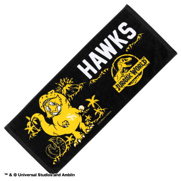 恐竜に扮したハリーがかわいい♪恐竜デザインや恐竜と恐竜の足跡をモチーフにしたShロゴデザインのジュラシック・ワールド×ホークスコラボグッズが初登場!Tシャツやタオルはもちろん、クリアファイルやキーホルダーなどアイテムも豊富。ジュラシック・ワールドコラボグッズでホークスを熱く応援しよう!
