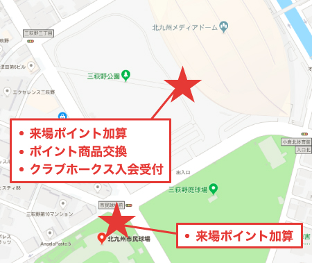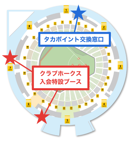 | ポイント商品交換、来場ポイント加算、クラブホークス入会受付 |