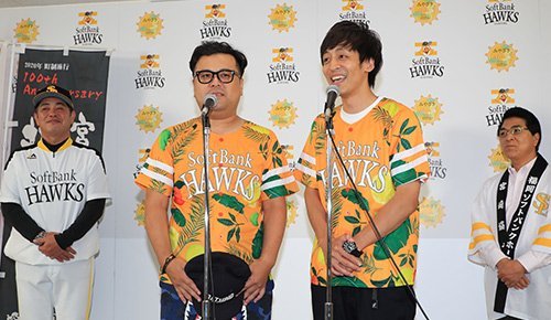 また、スペシャルゲストとして30日は女子ゴルフの三浦桃果選手、1日にはM-1グランプリ王者のとろサーモンのお2人という宮崎出身の方々がゲストとして登場。セレモニアルピッチを行いました。しかしとろサーモンの久保田さんが寸前の所で、同じ宮崎出身のテレビ朝日の松尾由美子アナウンサーにまさかの“強奪”にあってマウンドに立てず。「せっかく練習したのに!」と大暴れするところを、ホークスOBで現球団職員の江尻慎太郎氏と新垣渚氏に止められるという「爆笑コント」でスタンドを沸かせる一幕もありました。