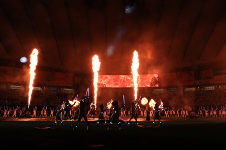 また、両日ともに試合後は光のセレモニーを開催。あらゆるひかりを使ったダイナミックで幻想的な炎と光のエンターテイメント集団「かぐづち」によるスケール感たっぷりのド迫力ショーに東京ドームが非日常的な空間に包まれました。