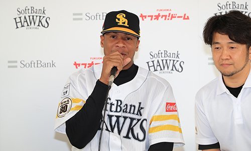 7月17日(火)、アリエル・ミランダ投手(背番号19)の入団会見がヤフオクドーム内のプレスカンファレンスルームで行われました。
