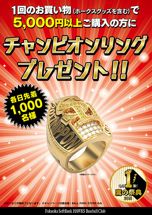 グッズ5,000円以上購入で「2017チャンピオンリング(レプリカ)」プレゼント(先着1,000名様限定)