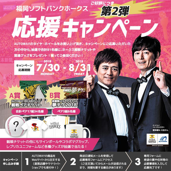 期間中タイヤ・ホイールをお買い上げいただいた方の中から抽選で合計81名様に、観戦チケットや関連グッズが当たる応援キャンペーンを実施中!