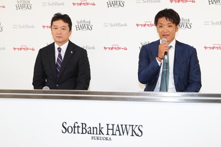 7月25日(火)、交換トレードで阪神タイガースから移籍してきた松田遼馬投手(背番号42)の入団会見がヤフオクドーム内のプレスカンファレンスルームで行われました。