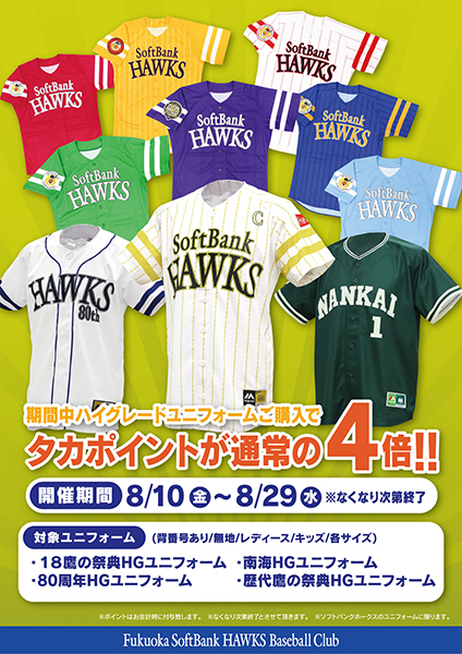 8月10日(金)~8月29日(水)、ハイグレードユニフォームをお買上のお客様に通常の4倍のタカポイントを付与いたします。