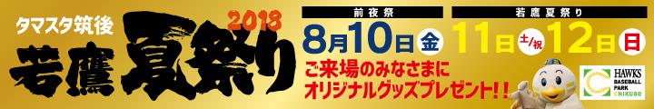 恒例の人気イベント「若鷹夏祭り2018」はもちろん、8月15日(水)は今シーズン、タマスタ筑後での阪神タイガースとの最後の試合になります。